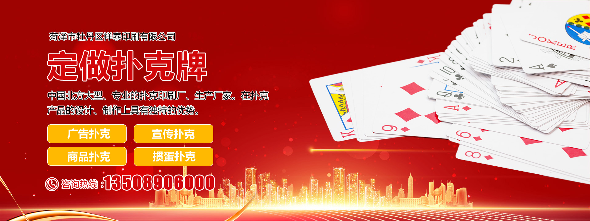 中國(guó)北方大型、專業(yè)的撲克印刷廠、生產(chǎn)廠家。在撲克產(chǎn)品的設(shè)計(jì)、制作上具有獨(dú)特的優(yōu)勢(shì)。我們是撲克制作,撲克加工,撲克生產(chǎn)的專業(yè)撲克廠,超前的設(shè)計(jì)、先進(jìn)的設(shè)備、一流的管理造就了一流的產(chǎn)品,贏得了廣大客戶的信賴。